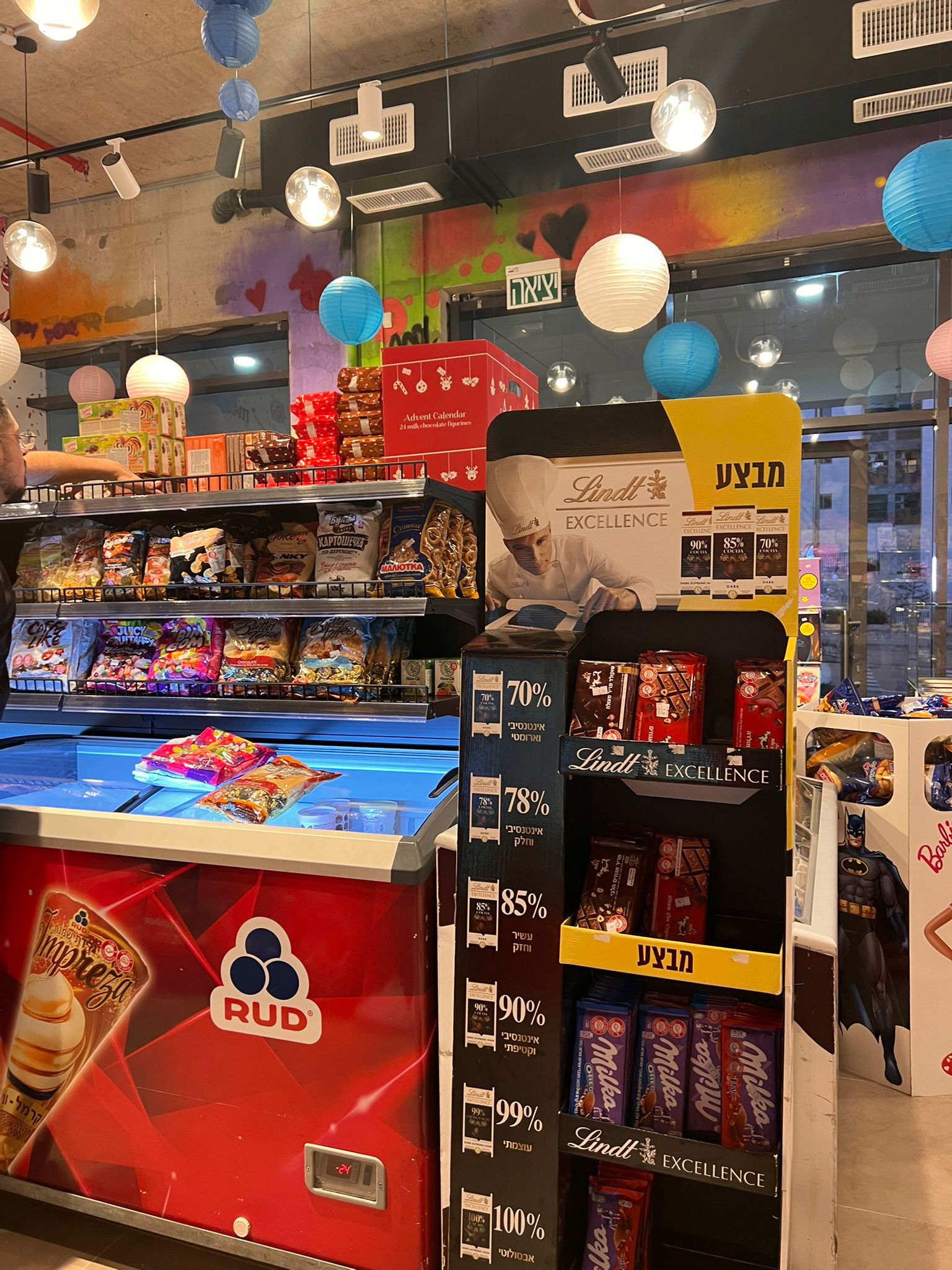 פתרונות מידוף ותצוגה לחנויות פיצוחים, ממתקים וגלידות