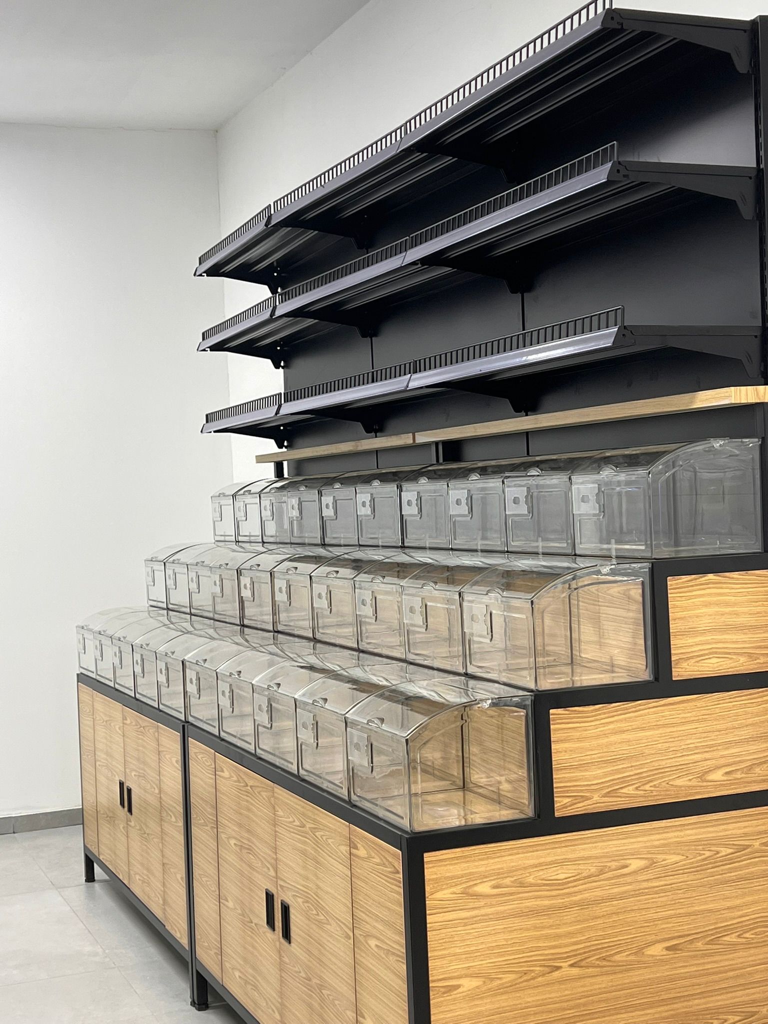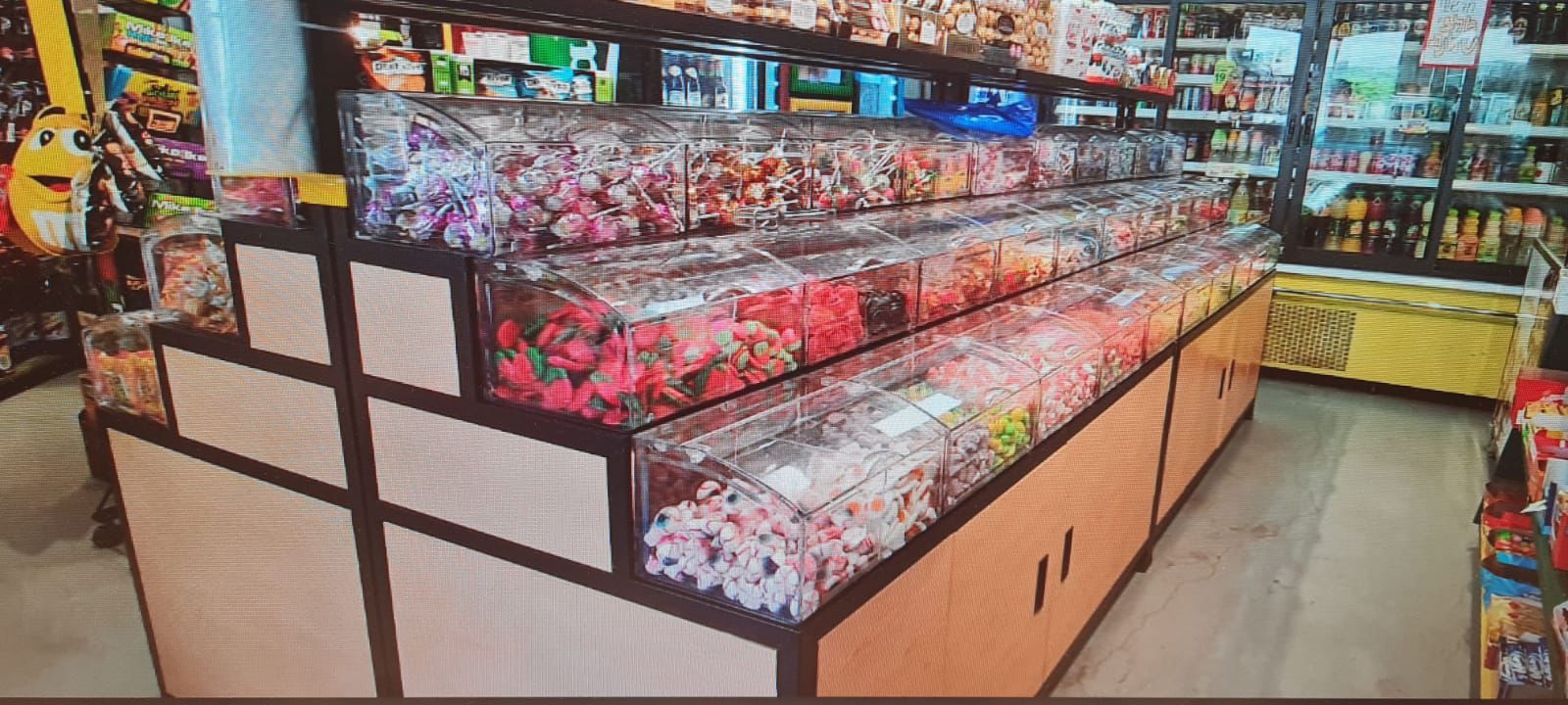 • מתקני תצוגה לתפזורת: פתרונות חכמים לממתקים ופיצוחים המאפשרים נגישות מלאה ללקוח ושמירה על טריות המוצר.
